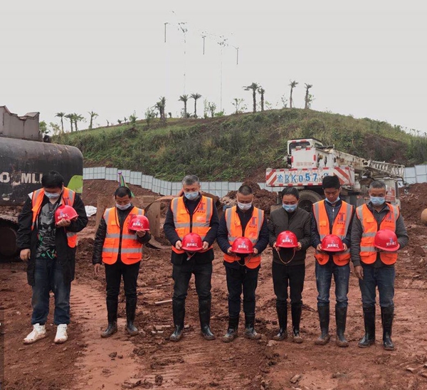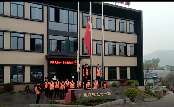 4月4日,全国各地举行对抗击新冠肺炎疫情斗争中牺牲烈士和逝世同胞的深切哀悼活动,十一建万萃城项目部积极响应号召,组织20余名在岗职工举行降半旗志哀仪式,在鲜艳的红旗下哀悼亡灵、缅怀逝者。上午10时整,伴随着防空警报和车辆鸣笛,工友们神情肃穆、低头默哀3分钟;其中,有车辆的员工特意赶到自己车旁,准时鸣响车笛以表哀思。