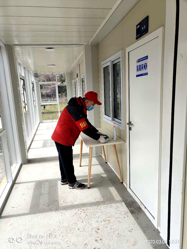 疫情隔离,但不能隔绝真情。奉建高速总承包项目部安全部部长尹凯荣从老家广州复岗后正出于自我隔离期,志愿者周嘉生主动承担关怀隔离职工的工作,他每天在做好自身防控的前提下,给他送去一日三餐,同时对其健康状况进行实时检测,并对其房间进行一日三次的喷洒消毒液消毒。