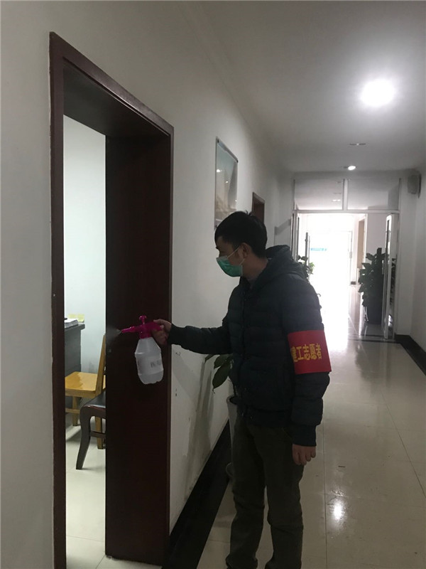 “所有来的人员都一定要测量体温,查看是否为公司内部人员,做好进出人员信息登记台账……”为了帮助该司机关尽快进入复工复产的状态,该司机关志愿者在上下班高峰时段进行防控检测点志愿服务,对进出公司人员进行体温检测和实名登记。同时,积极协助办公室开展卫生消毒作业,机关大楼每层设置志愿者专员,定时为办公室等密闭空间和外来办事人员进行局部喷洒消毒,并劝导外来人员正确佩戴口罩。