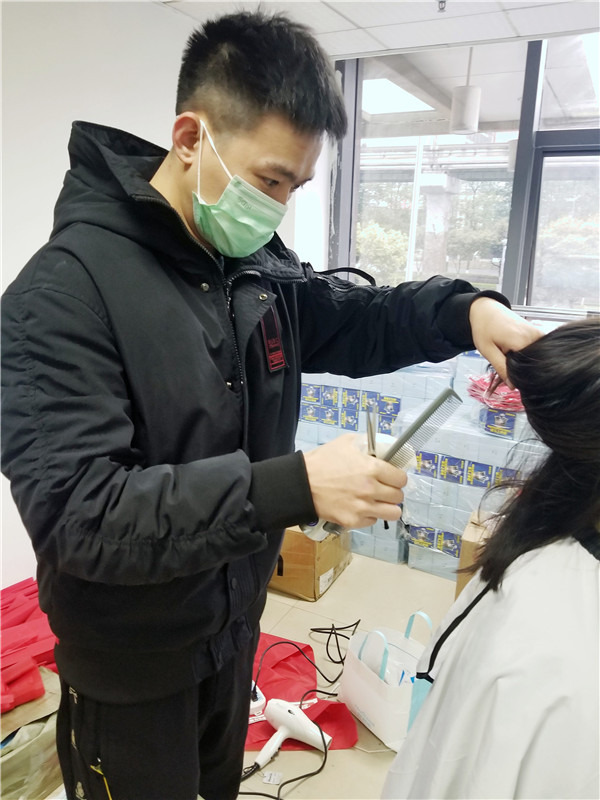 3月3日,重庆维景酒店理发师志愿者队伍,主动与鸳鸯街道取得联系,带上工具,走进街道服务中心,为坚守在抗疫一线的街道工作人员义务理发,“你为我站岗,我为你理发”,重庆维景酒店用实际行动支持防疫工作。