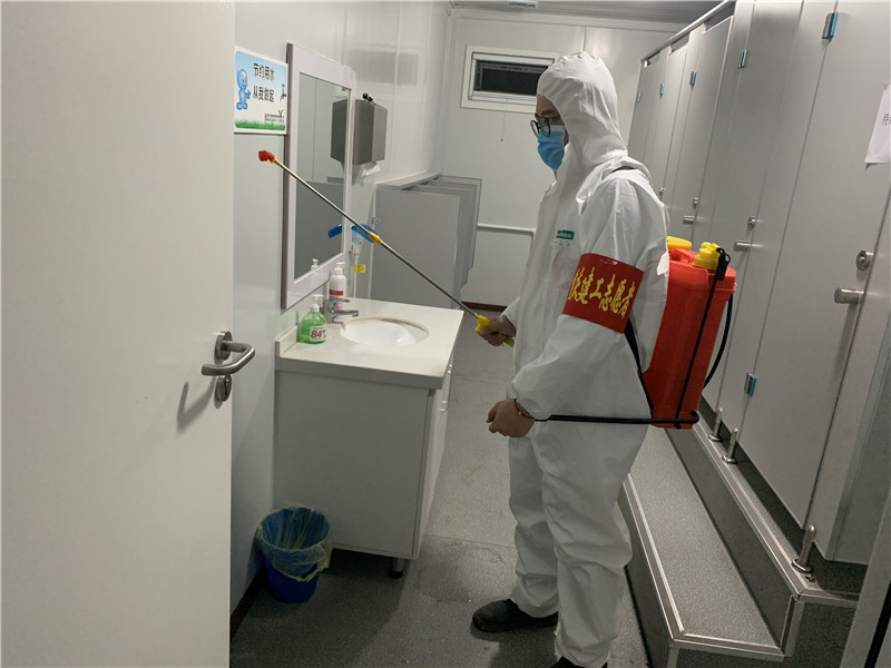 为了不耽搁项目部复工后的正常施工建设进度,保证测量数据准确无误,每天早上6:00,晨光熹微,黄科力早早起床穿好防护服,戴上护目镜,主动背起喷洒壶在项目部进行消杀工作。整个消杀工作耗时约90分钟,作业过程中全程都要背着喷洒壶。当脱下防护服时,黄科力穿在里面的贴身衣物早已被汗水浸湿。他来不及多想,赶紧换上干净的衣服,匆匆吃过早饭后背上测量仪器又上工地去了。这样忙碌的日子一过就是半个月,项目部的同事们从未听过他抱怨半句,却总能在脸上见到憨厚的笑容。