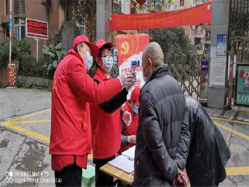 在石坪桥街道石坪村社区,有一个身穿红背心、头戴红帽、戴着口罩的老人,正在对来往辖区的人员进行测温,对每一辆过往车辆进行询问、登记,他是这个社区的党员志愿者,也是安装集团的一名退休党员,他叫田进中,大家亲切地称呼他“老田”。