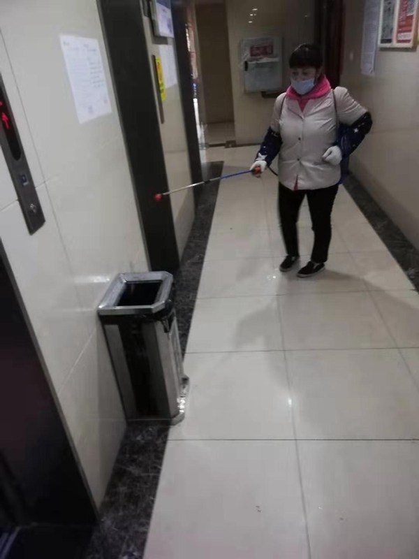 为防控新型冠状病毒,威特物业各物管处开展了园区全面消杀工作,对公共场所及人流密集处加强重点消杀防控,对电梯按键、门把手、门禁可视对讲面板等重要触点定时擦拭消毒。同时每日对垃圾桶及垃圾区进行全面消杀,在园区配置废旧口罩专用回收桶,防止及预防病毒的产生与传播。