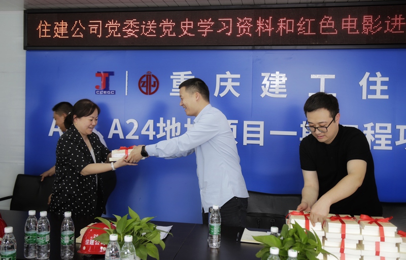 6月3日下午,住建公司党委在第三工程项目部A23、A24地块项目一期工程现场启动了送党史学习资料和红色电影进基层活动。公司党委副书记、纪委书记、工会主席戴广亮代表公司党委为司属17个党支部送上精心挑选的党史学习资料共计680本,包含《建党伟业》《我和我的祖国》《钱学森》在内的红色主旋律电影8部。