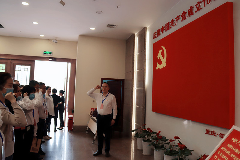 在红岩革命纪念馆,党委书记、董事长向虎同志带领大家面对党旗庄严宣誓,重温入党誓词。全体党员职工在讲解员的引领下,先后参观了专题展览——千秋红岩,重走了红岩路,瞻仰了红岩公墓。党员职工一路认真看、用心记,在一个个历史场景中思索流连,在庄重肃穆的氛围中默默体悟,更加激发了大家对党忠诚、为党的事业奋斗终身的决心。