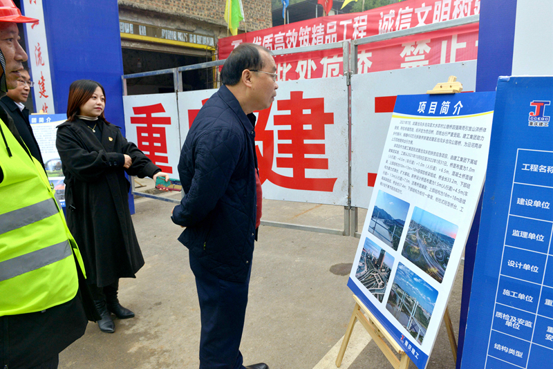 在项目现场,唐德祥实地察看并详细询问了项目建设、安全生产、疫情防控和质量管控等情况,并就当前施工过程中遇到的问题与陪同调研的武隆区和沧沟乡领导作了沟通协调。