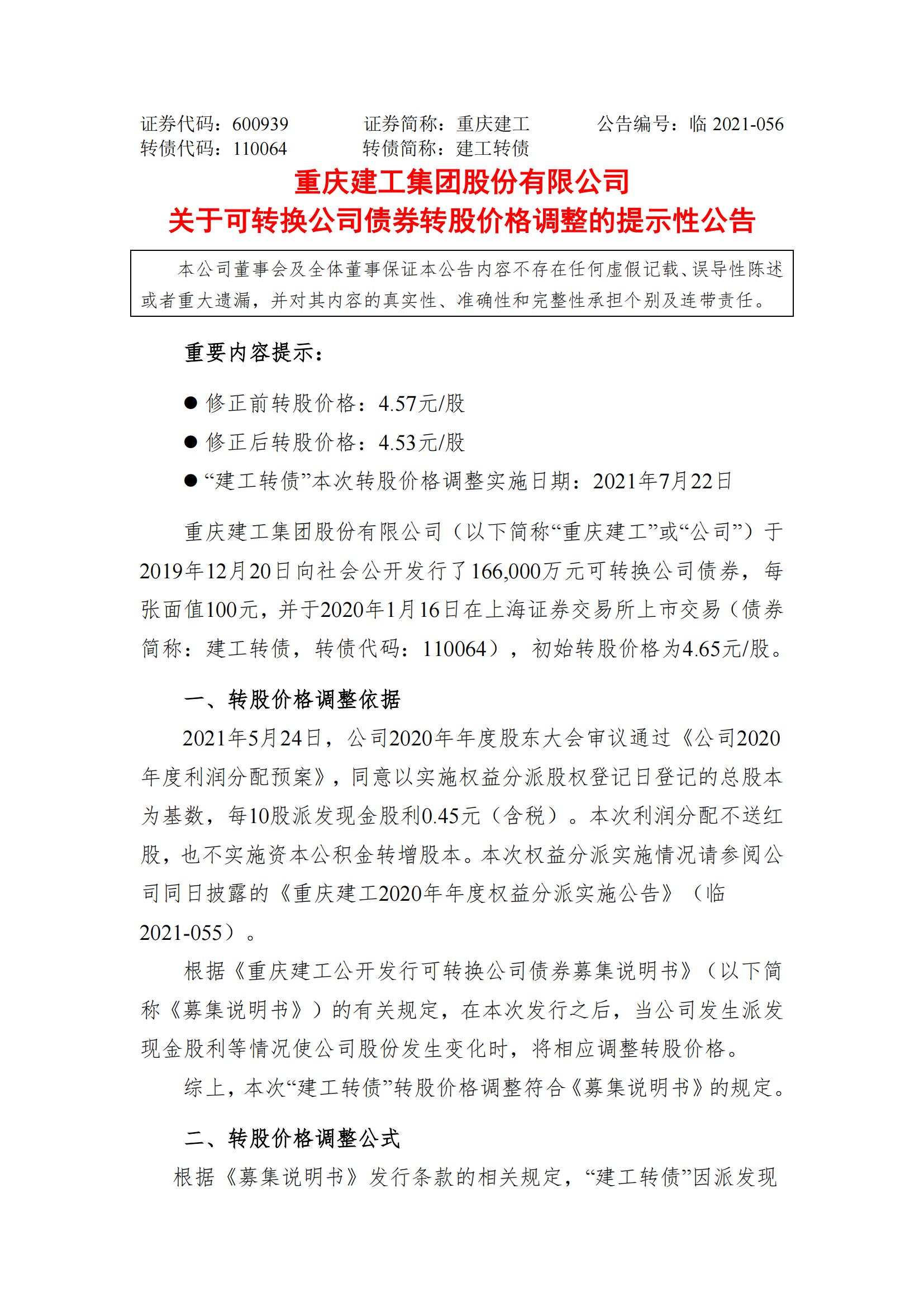 关于可转换公司债券转股价格调整的提示性公告