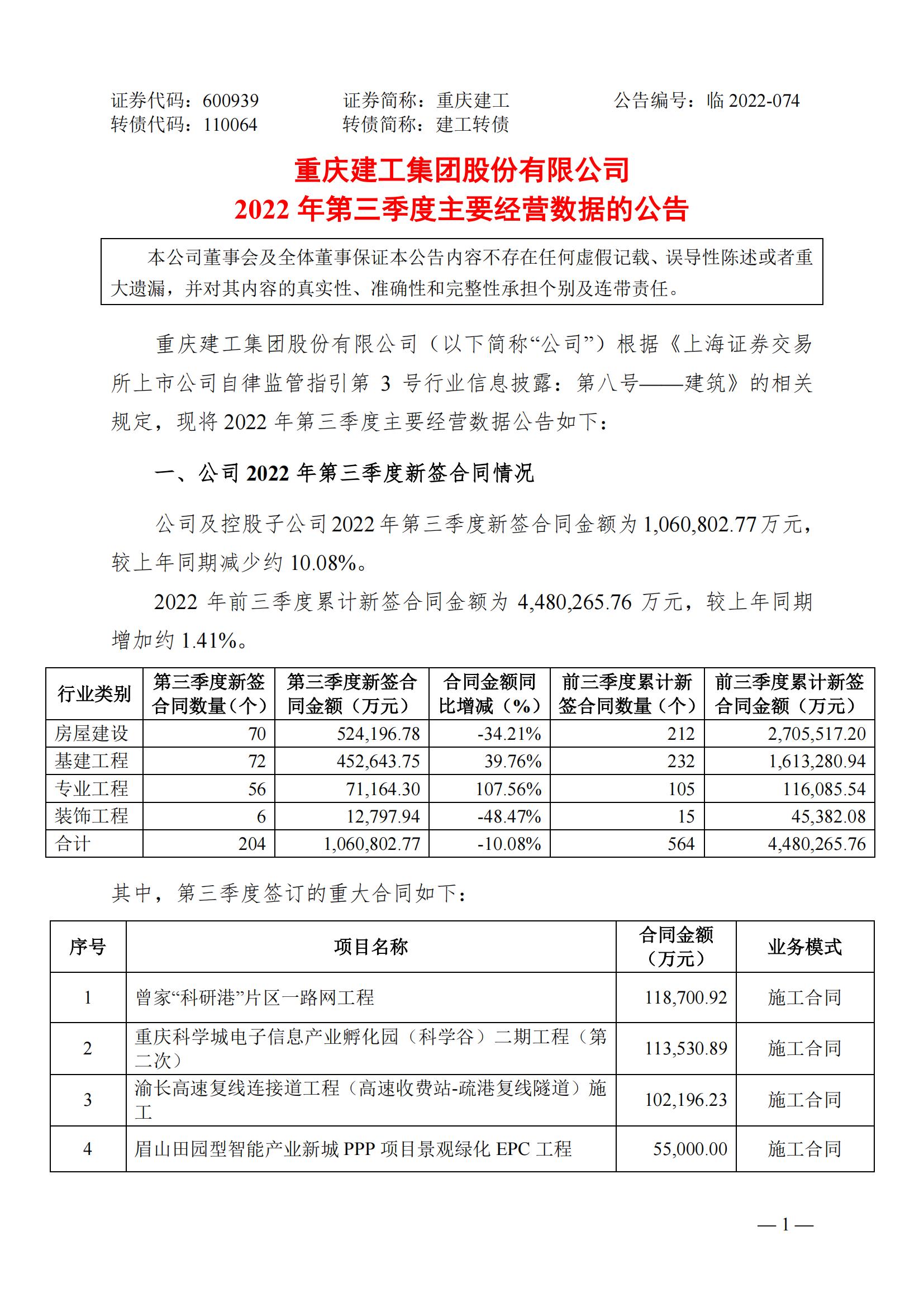 关于全资子公司签订渝长高速复线连接道工程施工合同的公告