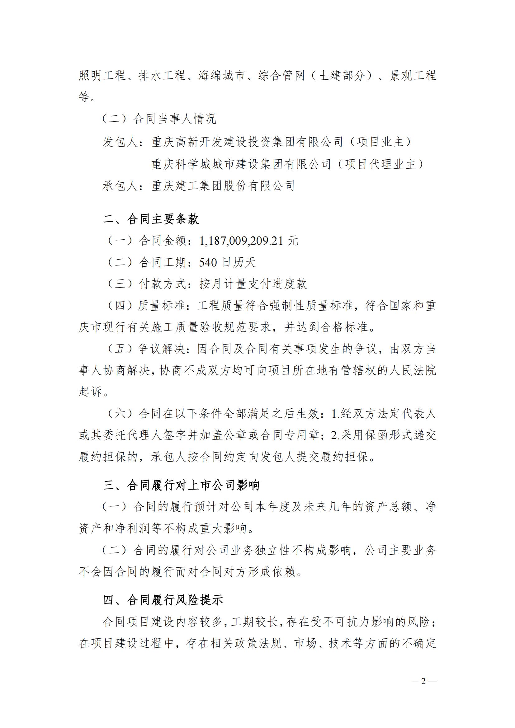 伟德体育关于全资子公司签订重庆科学城电子信息产业孵化园(科学谷)二期工程合同的公告