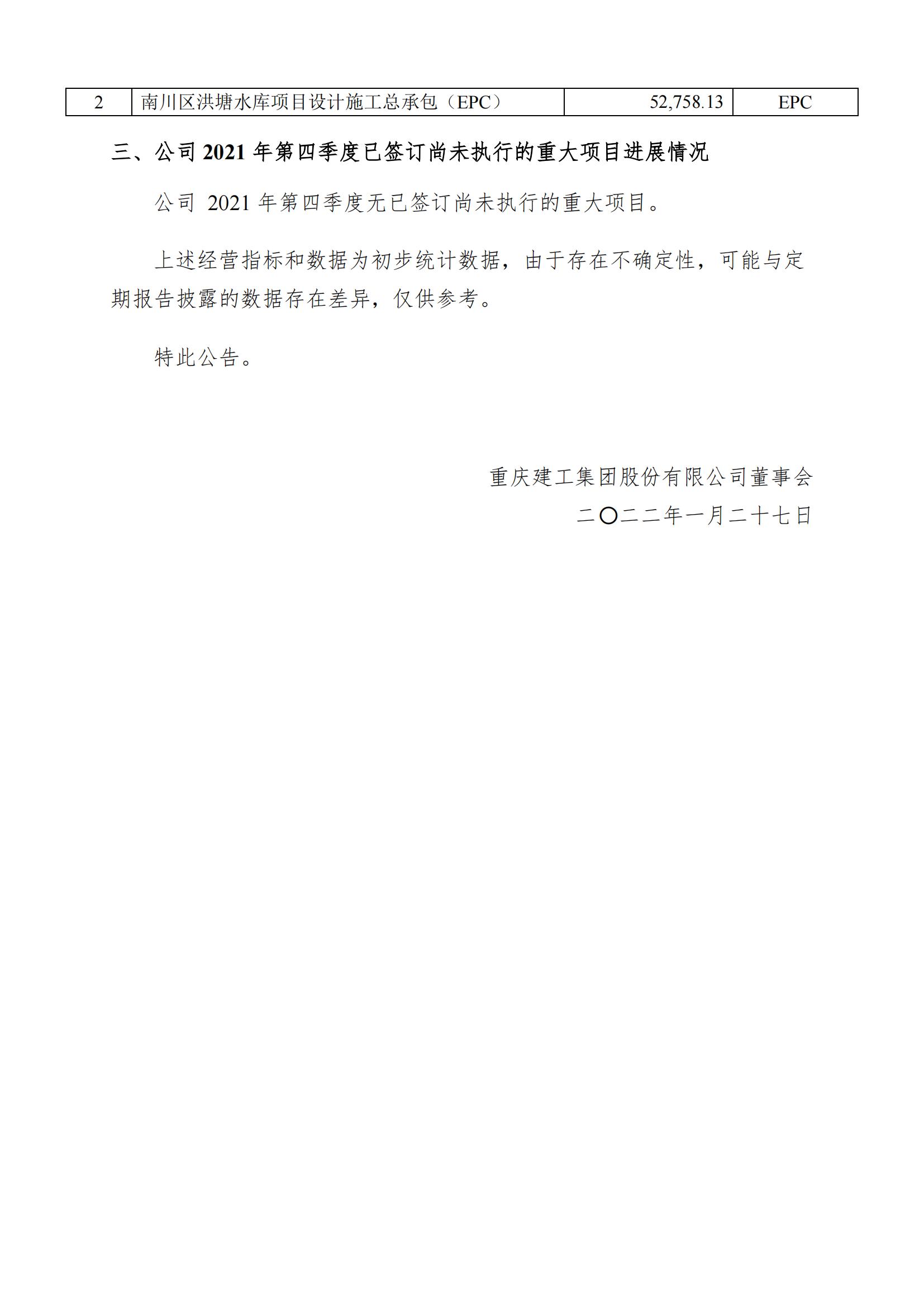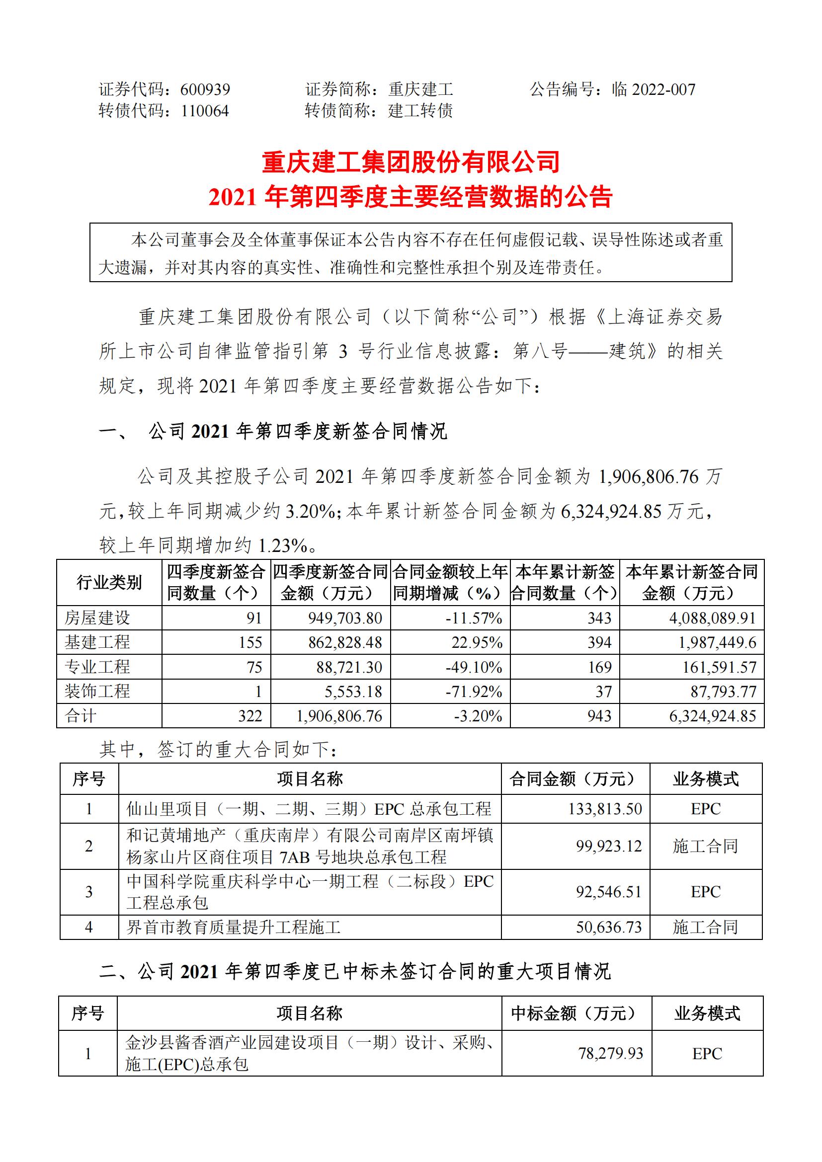 四季度主要经营数据公告