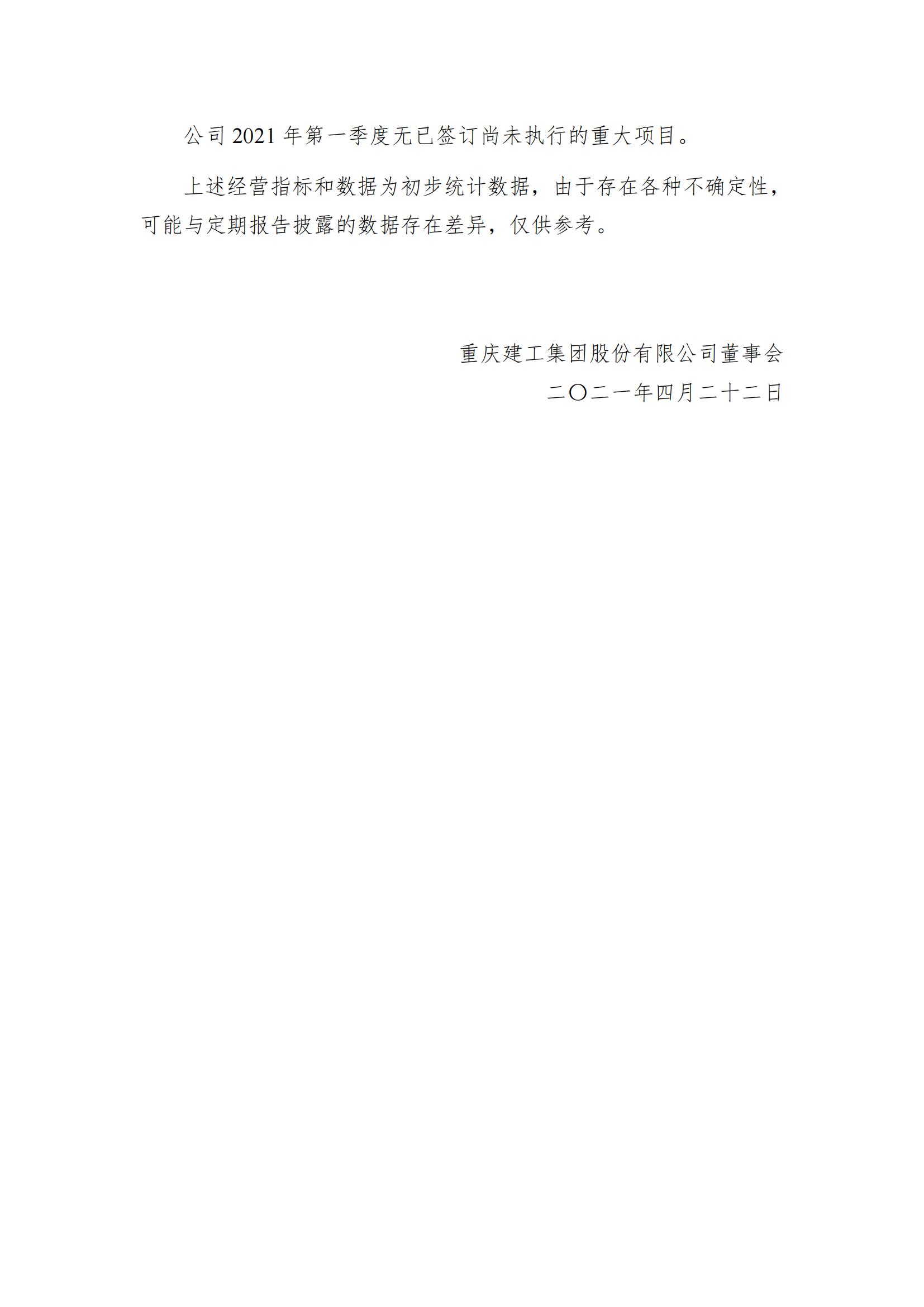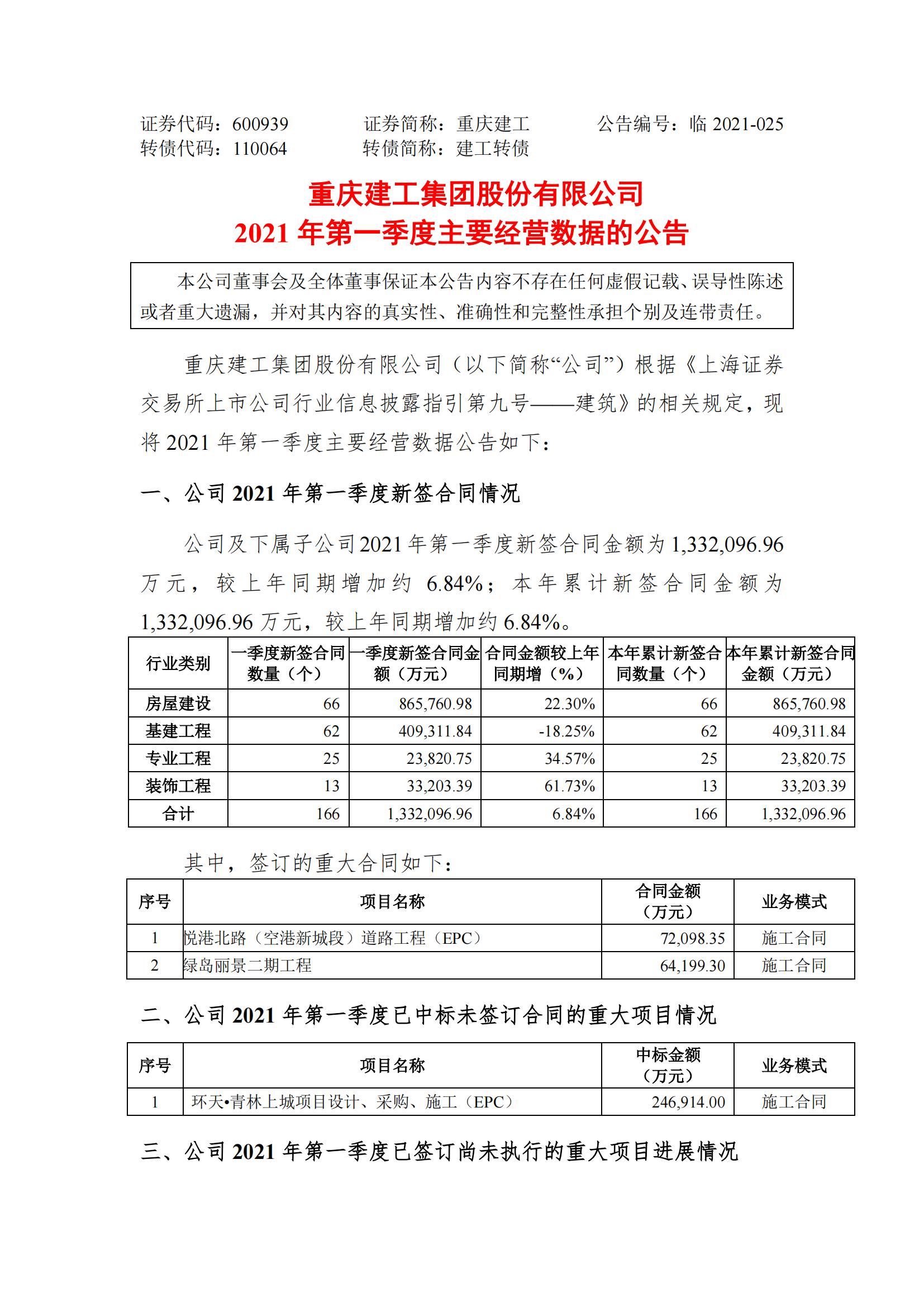 一季度主要经营数据公告