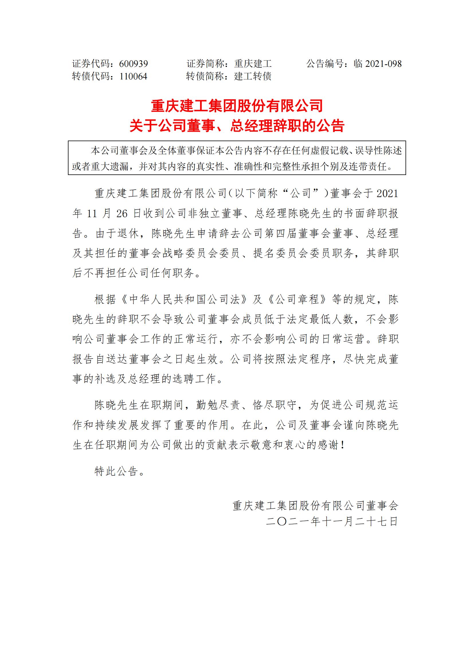 关于公司董事、总经理辞职的公告